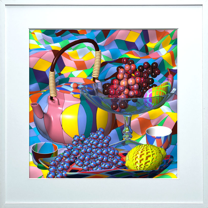- Artwork stretched and framed by floater frame measuring 54 by 54 by 4.3 cm