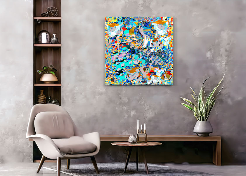 - Artwork stretched on stretching wooden frame measuring 50 by 50 by 2.5 cm