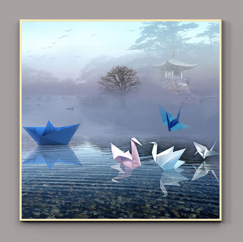 - Artwork 50 x 50 cm, Stretched and framed in zero gap floater 52 x 52 x 4.3 cm no Rebate. Natura wood color.