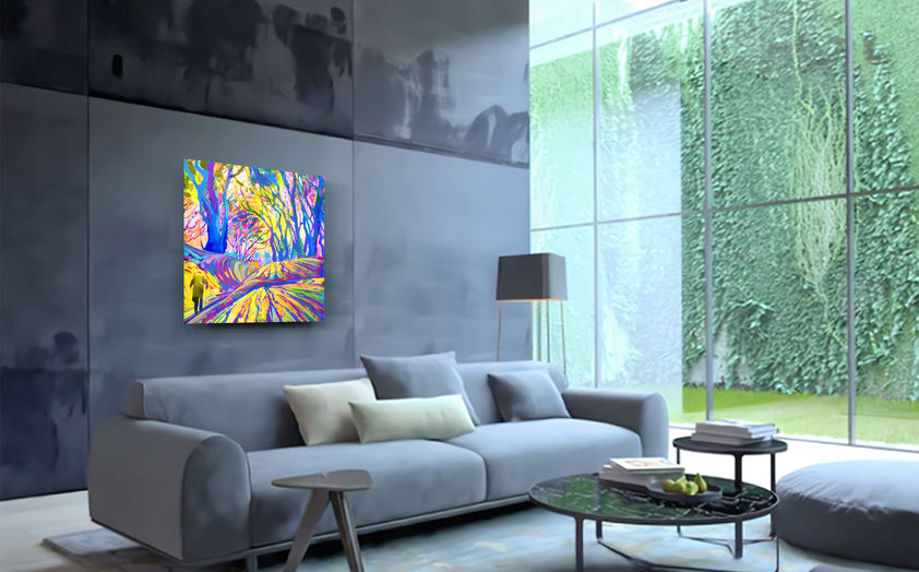 - Artwork 50 x 50 cm, Stretched and framed in zero gap floater 52 x 52 x 4.3 cm no Rebate. Natura wood color.