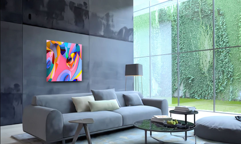 - Artwork stretched on stretching wooden frame measuring 50 by 50 by 2.5 cm